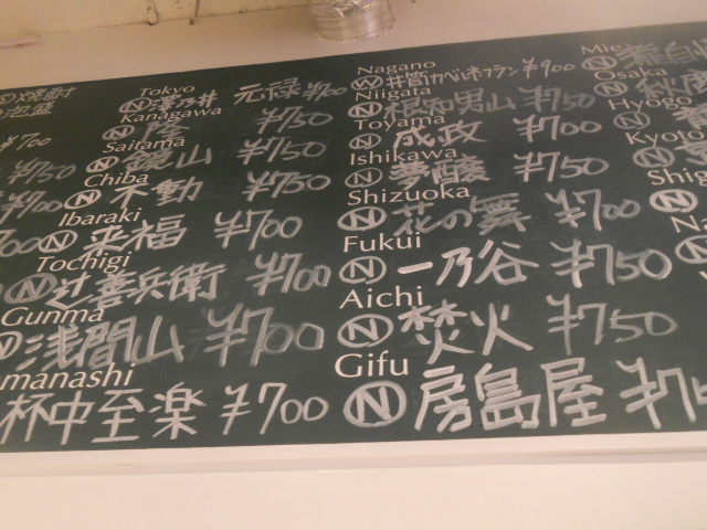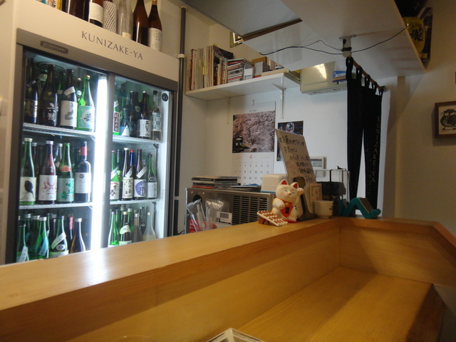 国内旅行が趣味で、日本全国47都道府県に足跡をつけている当店のマスターが、旅をする気分で地酒を楽しんで頂きたいと、2013年5月に開店しました。お店の面積は4坪強、10人も入ればいっぱいの、小さな小さなお店です。お酒の種類と取り扱い銘柄数ですが、日本酒がおよそ40種類、焼酎類(芋、麦、米、黒糖、泡盛)がおよそ25種類、ワインが白赤それぞれ1種類、そのほかに日本酒ベースのフルーツリキュールも梅、桃、みかんの3種類を用意しております(むろん、全部国内産のお酒です。輸入のお酒は一切扱っておりません)。ビールはキリンのハートランド生をご用意しております。扱う銘柄は固定せず、適宜入れ替わります。フードメニューは全国各地から取り寄せた、お酒と共に楽しめる珍味類を常時15種類程度ご用意しております。